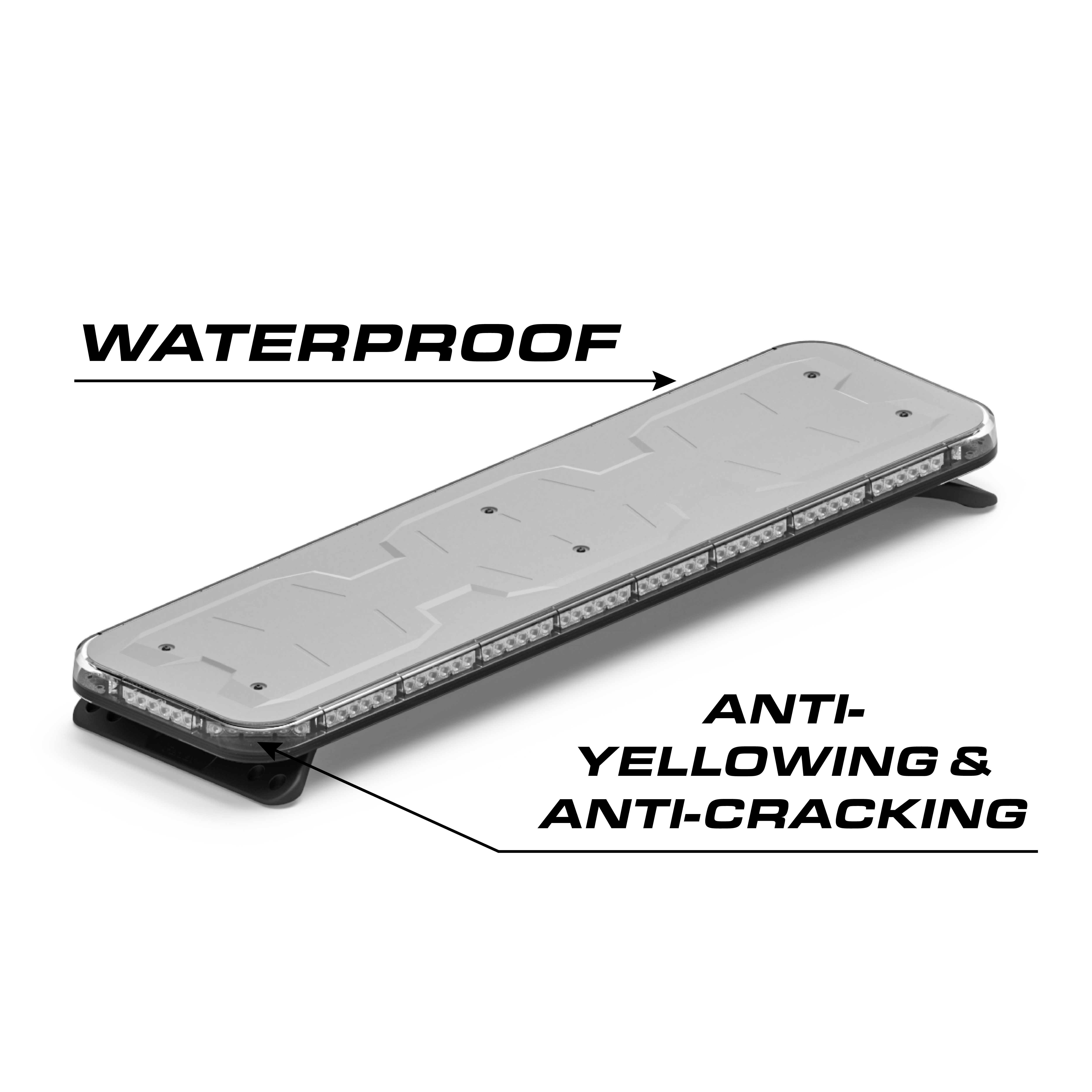 Single-color lightbars for emergency warning use. User configurable in red, blue, amber, white, and green, the Fusion-S line offers a 40-degree optic that is 60% brighter than the previous Fusion family.