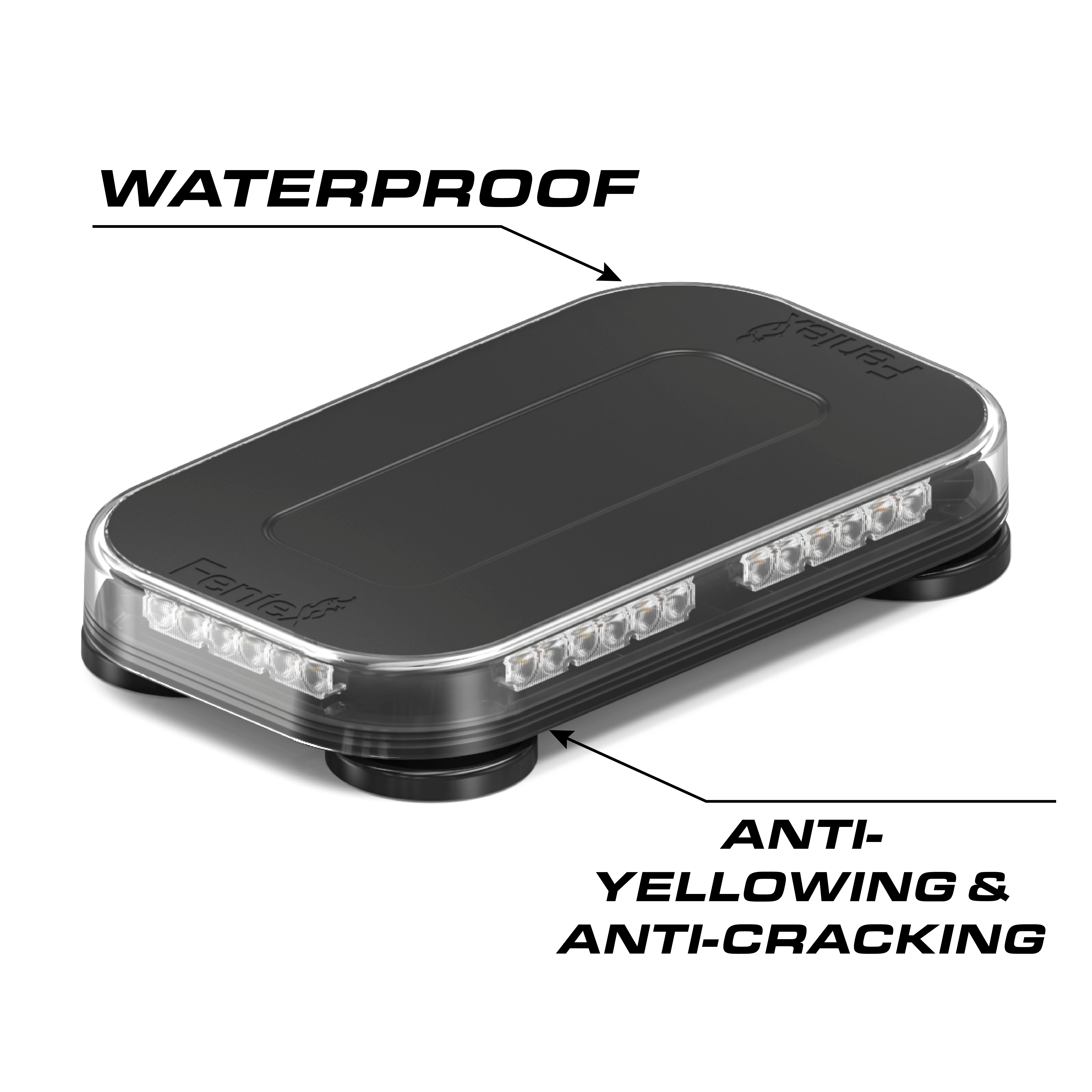 Compact single-color lightbar for emergency warning use. User configurable in red, blue, amber, white, and green, the Fusion-S line offers a 40-degree optic that is 60% brighter than the previous Fusion family.