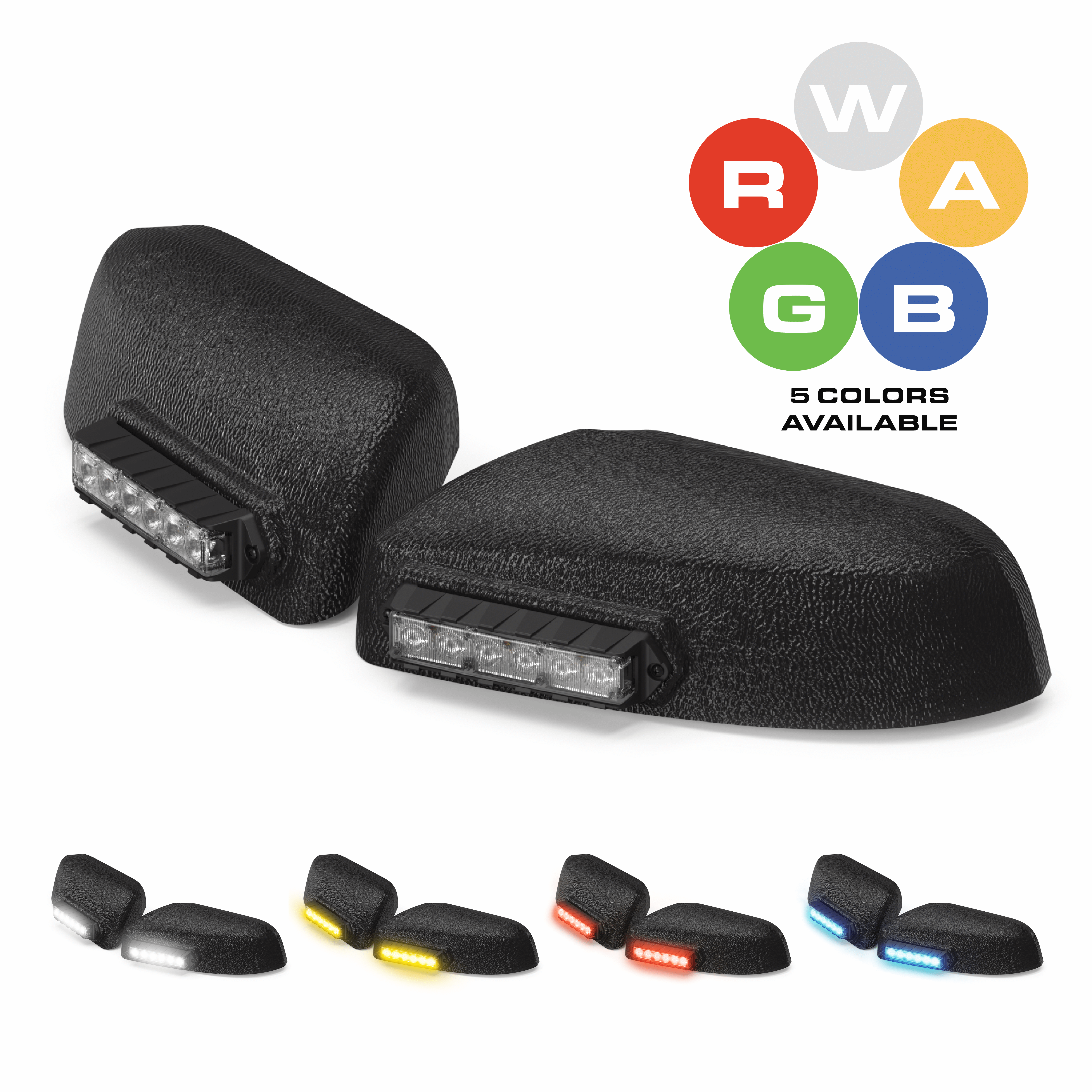 Slim and low-profile, the Fusion Mirror mounts securely to the vehicle's side mirrors and are uniquely angled to increase visibility, especially at intersections. User configurable in red, blue, amber, white, and green, the Fusion-S line offers a new and improved 40-degree optic that is 60% brighter than the previous Fusion family.